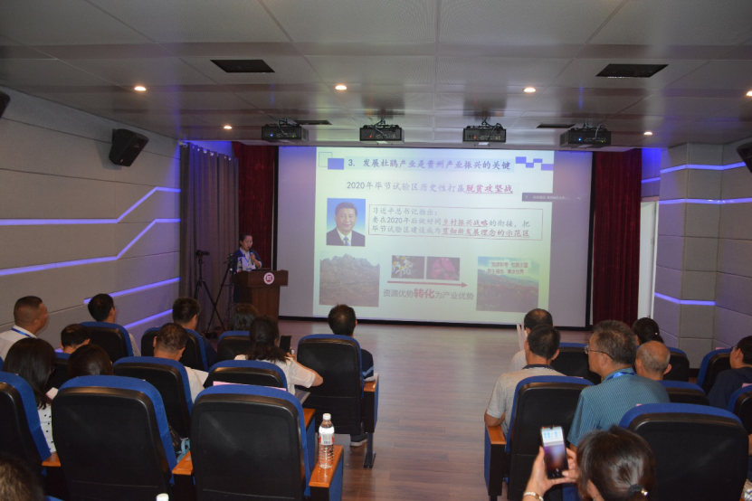 贵州省林业局副局长张富杰为高山杜鹃国家创新联盟授牌, 秘书处就高山杜鹃国家创新联盟筹备情况进行了工作汇报。高山杜鹃国家创新联盟成立筹备期间,通过克隆高山杜鹃花色呈色关键酶基因并进行功能验证、发现杜鹃远缘杂交生殖隔离存在非对称性和胚拯救技术,突破远缘杂交不育技术难题等理论创新,突破了种间杂交育种技术、种苗繁育技术和花期调控等关键技术,促进了新品种筛选机制、规模化苗木生产和旅游创收期延展,推动高山杜鹃的高效可持续发展。