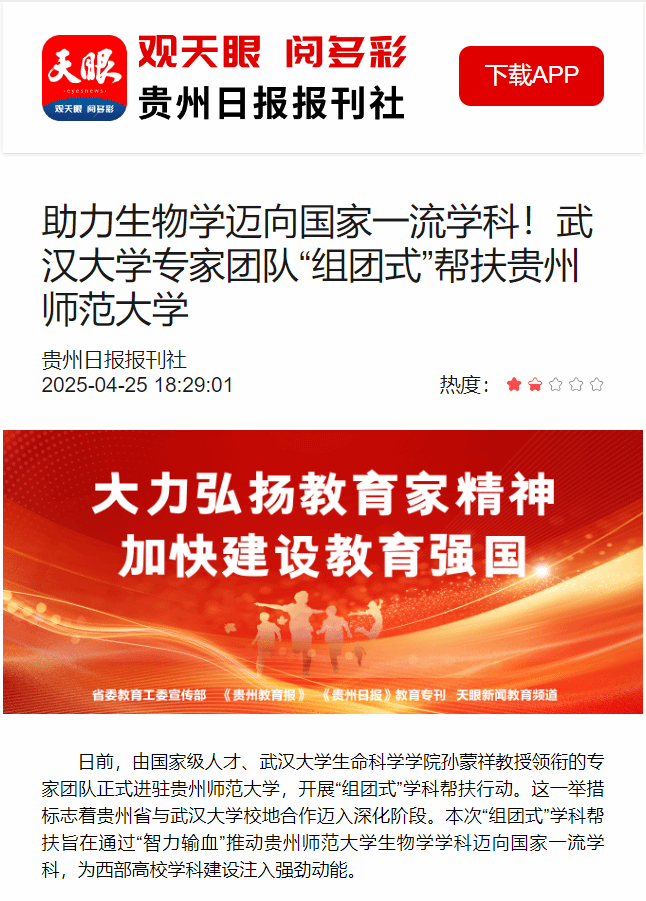【转载】天眼新闻|助力生物学迈向国家一流学科!武汉大学专家团队“组团式”帮扶威廉希尔体育