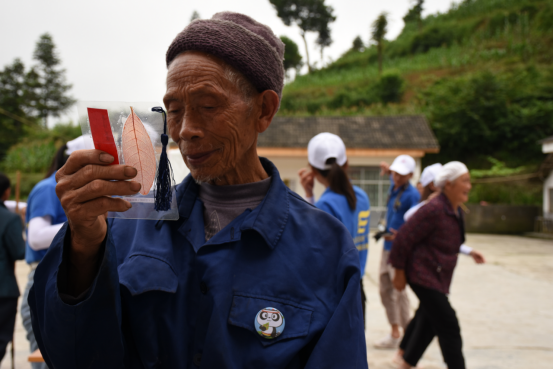 他们不光完成了作品,还在书签中留下了祝福的话语:努力拼搏,是一位父亲对孩子殷切的希望;努力奋斗,是一位伯父对孩子真诚的期许;加油,是一位女孩对自己未来的鼓励;身体安康,是志愿者们对村里老人的深情祝福……一张小小的叶脉书签承载着他们数不清道不尽的爱与希望。