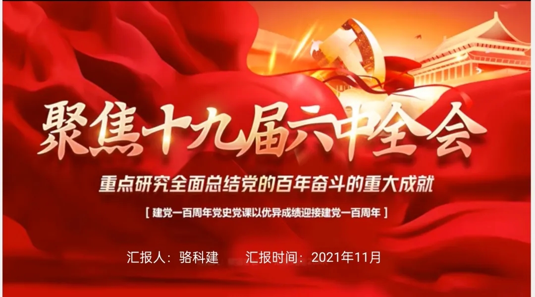 骆科建重点领学了党的十九届六中全会,深入解读其政治内涵和实践意义。党的十九届六中全会,是在中国共产党走过百年光辉历程的重大时刻、站在“两个一百年”奋斗目标的历史交汇点上召开的一次具有重大里程碑意义的重要会议。全会通过的《决议》是一篇承前启后、继往开来的马克思主义纲领性文件,集中了全党智慧,是实现中华民族伟大复兴的行动指南,全体党员要认真学习、深刻领会。