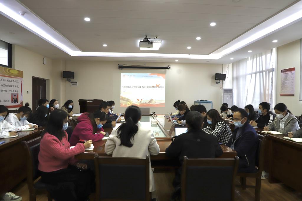 会上,党委书记骆科建传达学习《公司党委关于印发<威廉希尔体育党支部书记工作例会制度(试行)>的通知》。党委组织员刘怡组织观看刘秀祥先进模范人物事迹影视视频并汇报公司党委班子成员联系师生党支部、公司党委班子成员和党员学科带头人联系青年教师有关工作。与会人员就各党支部“三会一课”、主题党日、谈心谈话、组织生活会和民主评议党员等基本制度执行情况和经验做法进行交流分享。