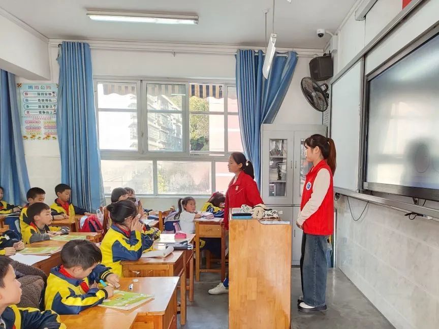 下午13:30,全体志愿者在一食堂门口集合,随后一同前往阳光小学进行授课。课堂开始前,志愿者先抛出了一个问题:“小朋友,你们知道我们人类是从哪里来的吗?”孩子们争先恐后地说出自己的想法,课堂的氛围瞬间被点燃。