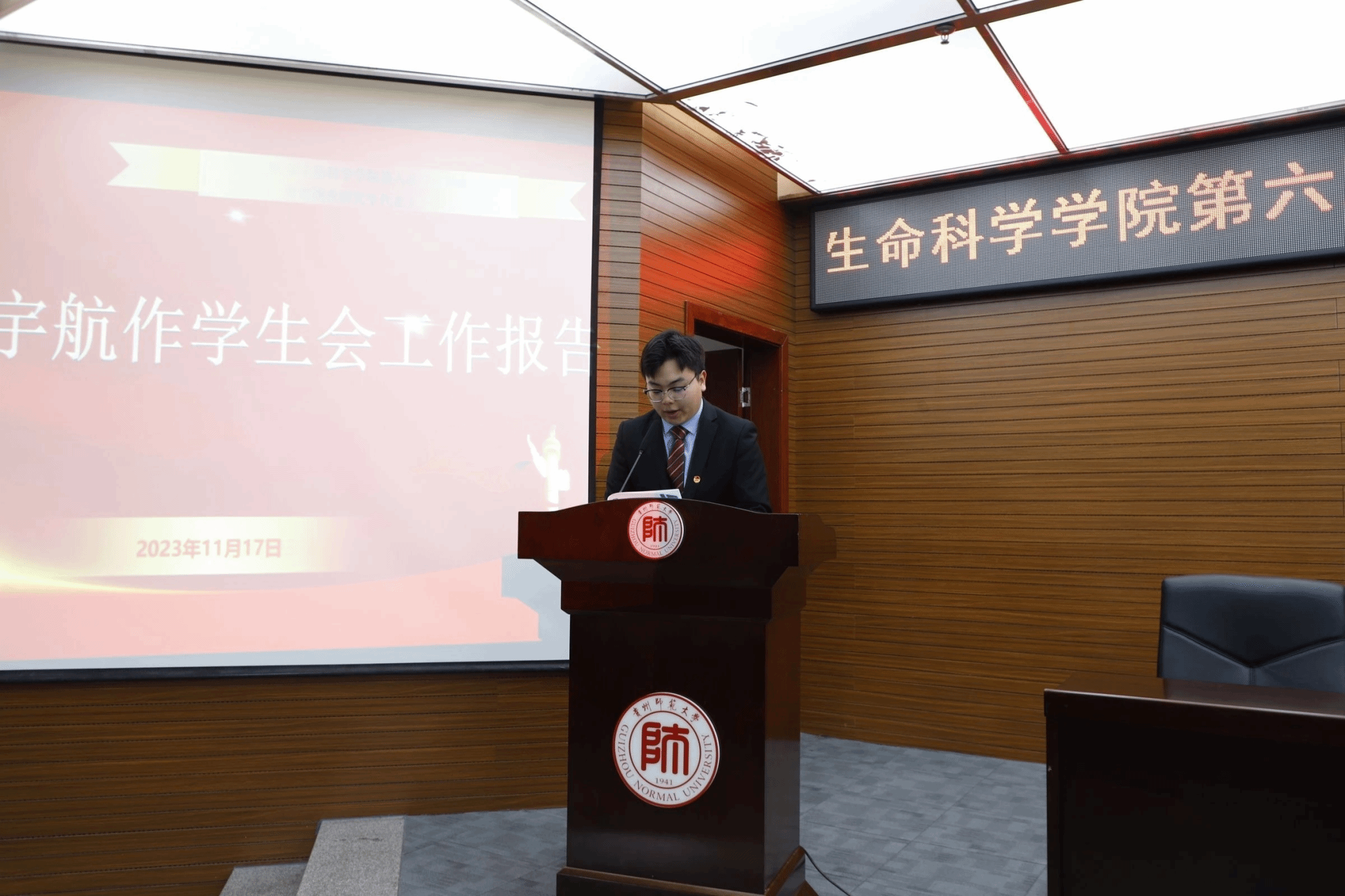 大会开幕式结束后,张宇航同学代表上一届员工会主席团成员,做了题为《传承红色基因 铸就光辉历程 夯实创新 奋发前行 为实现中华民族伟大复兴贡献力量》的员工会工作报告;伍素同学代表上一届研究生会作了题为《生逢其时勇奋斗 征程从未有穷期 大盘取厚势 落子开新局 再回首风雨兼程路 看今朝砥砺再出发》的研究生会工作报告。