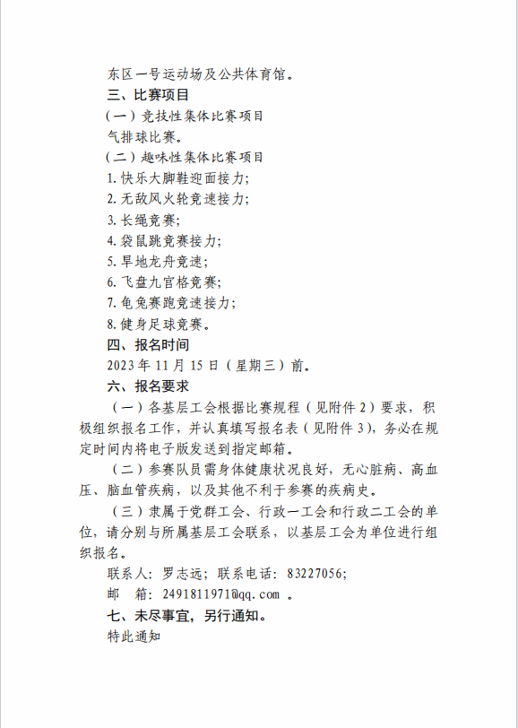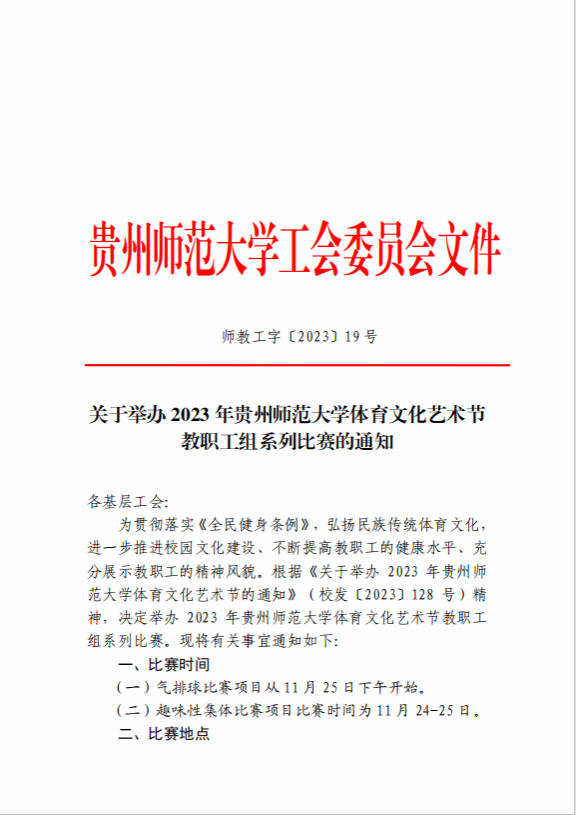 关于举办2023年威廉希尔体育体育文化艺术节教职工组系列比赛的通知