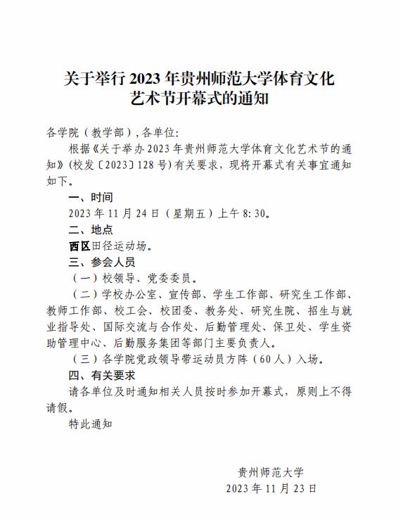 关于举行2023年威廉希尔体育体育文化艺术节开幕式的通知