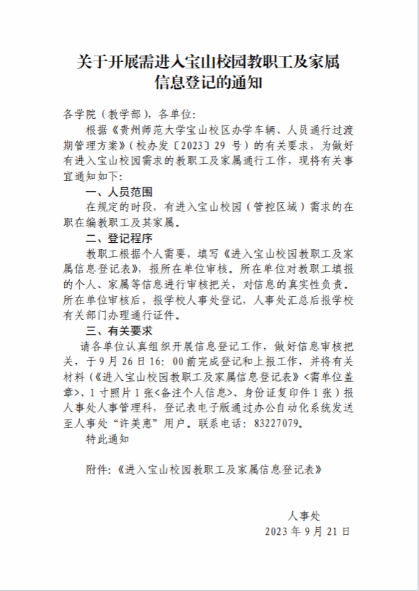 关于开展需进入宝山校园教职工及家属信息登记的通知