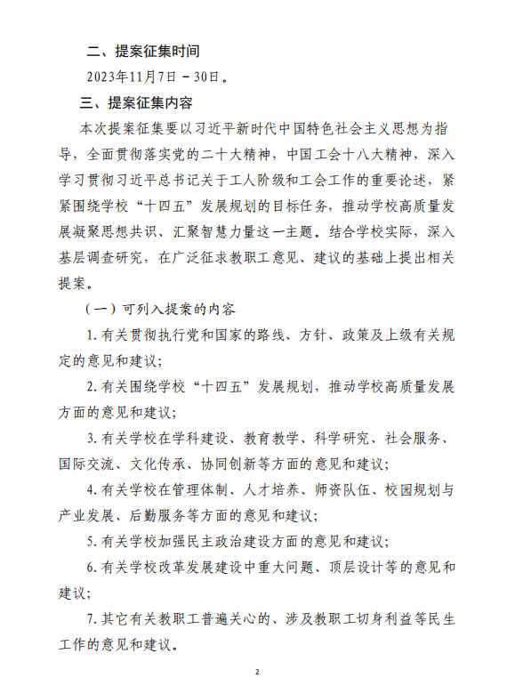 关于做好威廉希尔体育第七届教职工代表大会第二次会议提案征集工作的通知