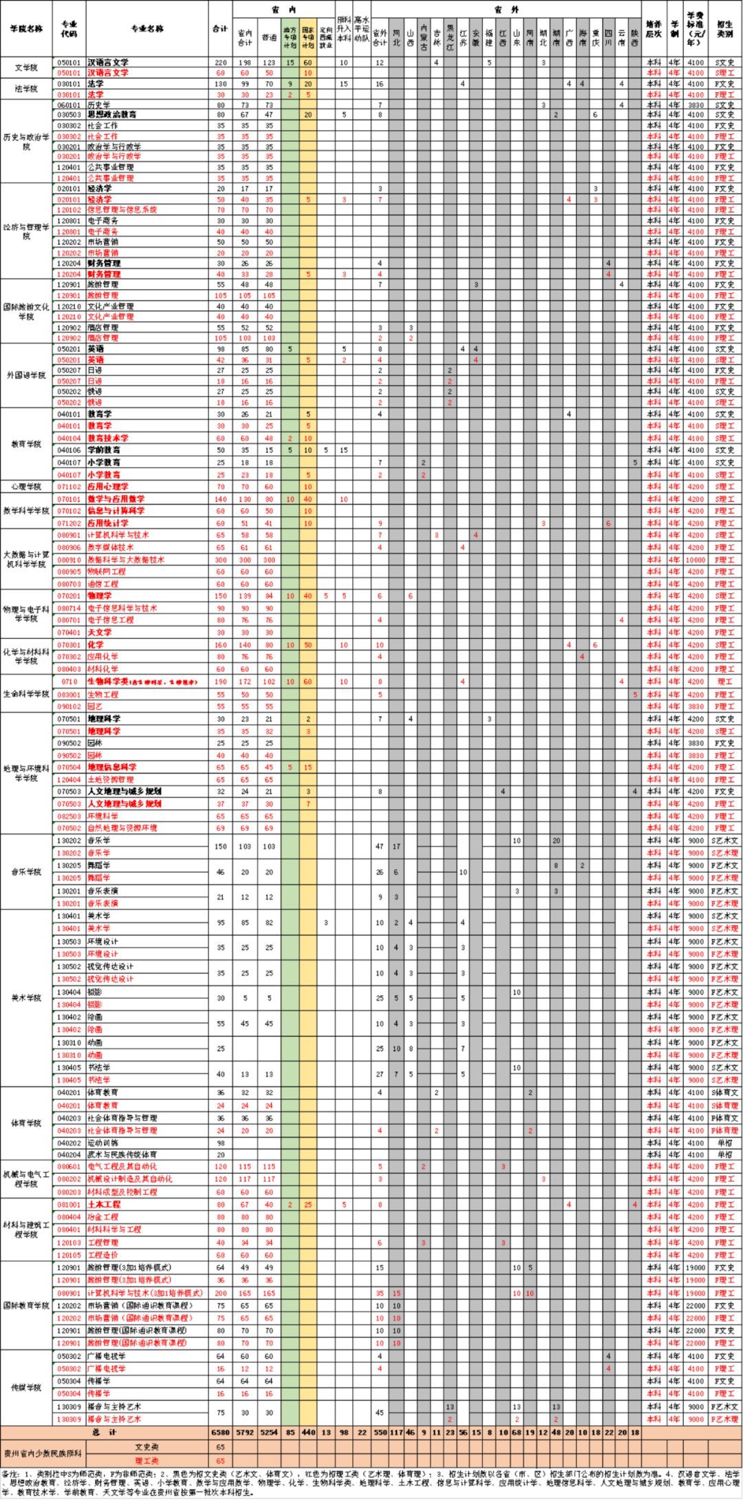 4、汉语言文学、法学、思想政治教育、经济学、财务管理、英语、小学教育、数学与应用数学、物理学、化学、生物科学类、地理科学、土木工程、信息与计算科学、应用统计学、地理信息科学、人文地理与城乡规划、教育学、应用心理学、教育技术学、学前教育、天文学等专业在贵州省按第一批次本科招生。