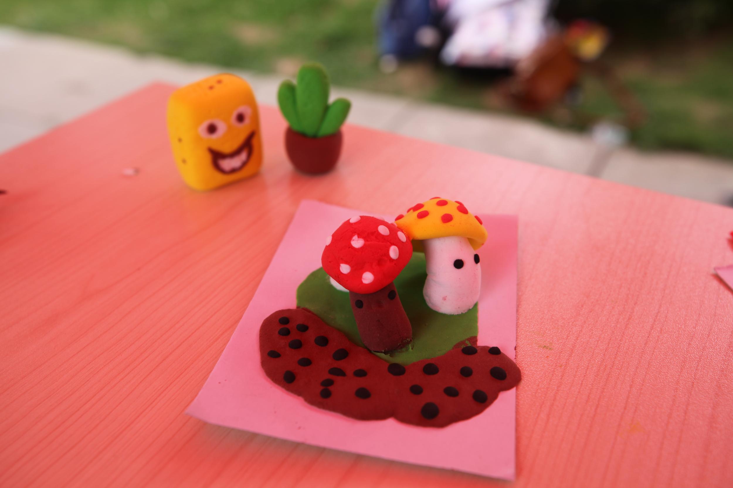 看了平面的蘑菇图画,有没有兴趣自己来捏一捏蘑菇呢?活动现场,相关专业的师生们还为观众们讲解蘑菇各部分的名称;在他们的指导下,观众们甚至还可以亲手制作一个蘑菇纪念品带回家。