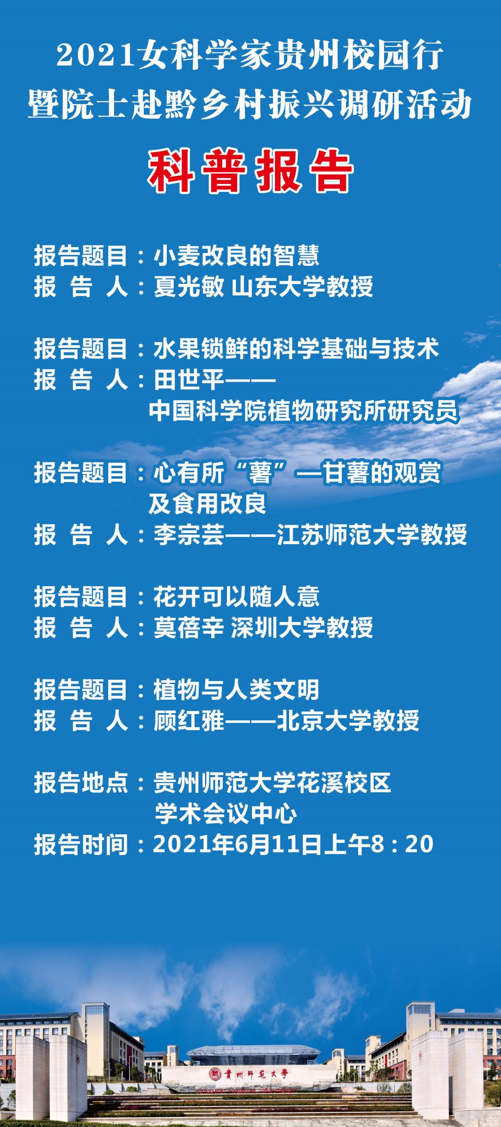 【讲座预告】2021女科学家贵州校园行暨院士赴黔乡村振兴调研活动方案