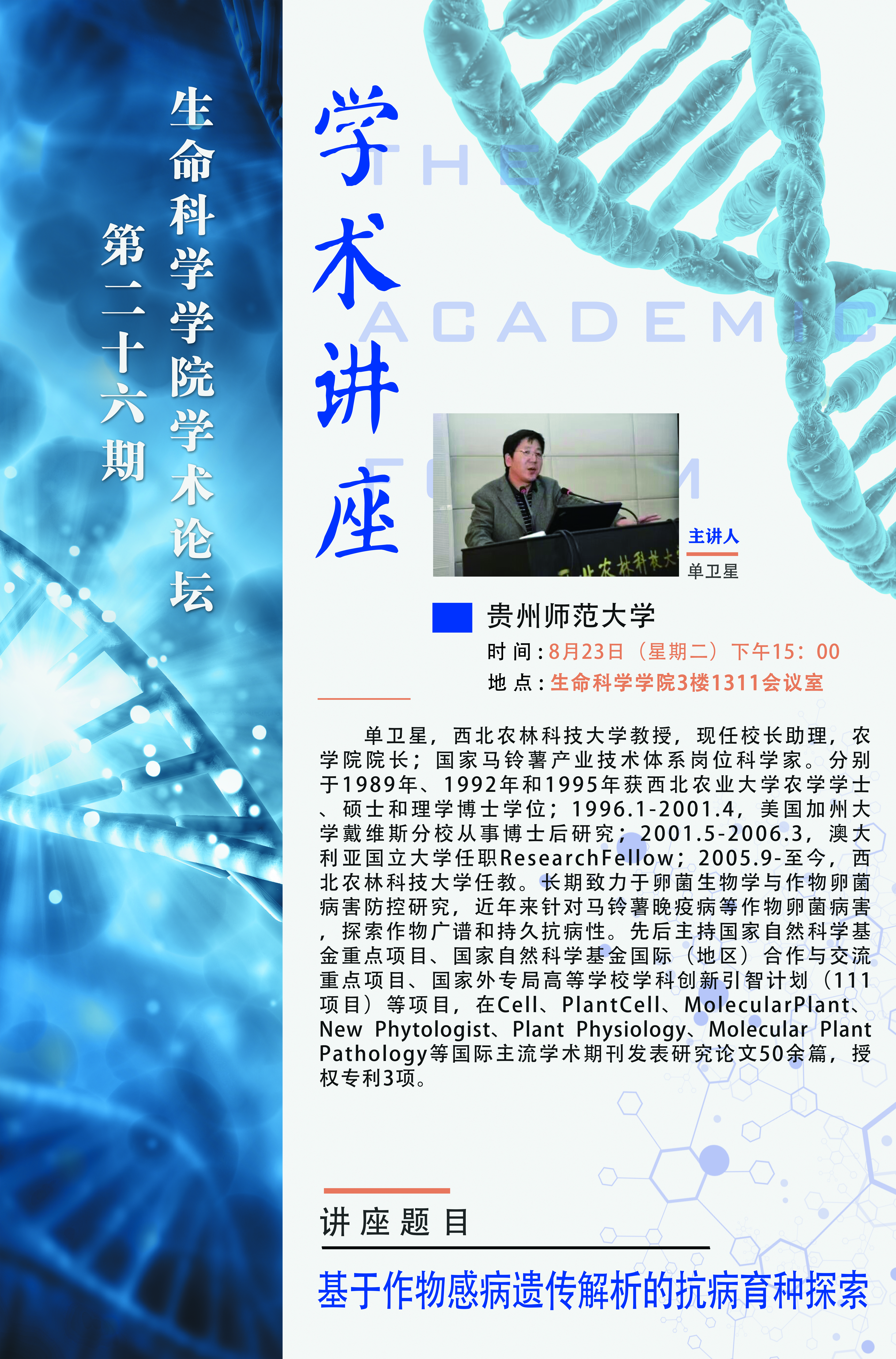 讲座通知:基于作物感病遗传解析的抗病育种探索(8月23日周二)