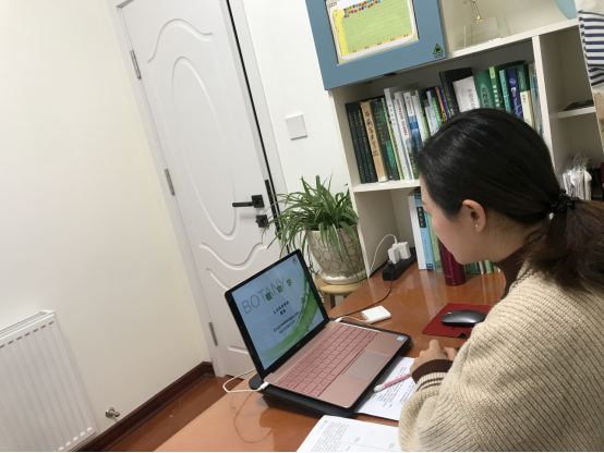 图为公司王玉倩老师在家线上授课中