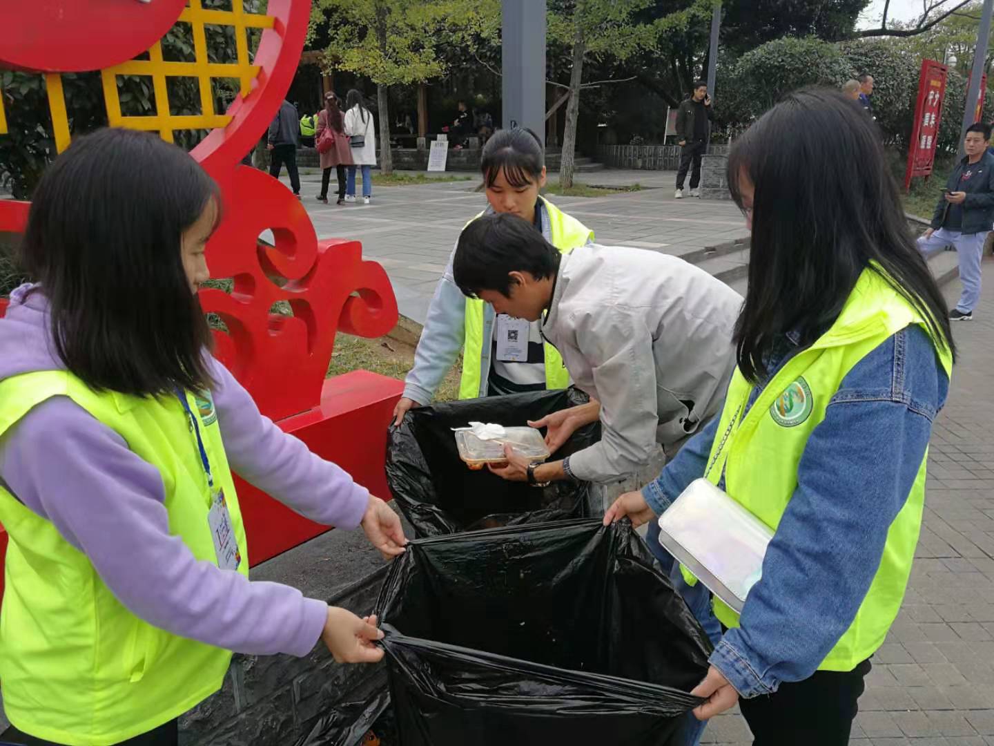 科普志愿者们还从自身做起,将现场工作餐产生的废弃物按标准分类,厨余收入易腐垃圾,餐盒归入其他垃圾分别整理好,亲自动手,感受或又更深。