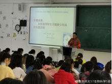 在实践教学活动周里、17级生物科学全体员工在理综楼5B02分别听了“遗传定律概念体系和思维模型的建构与运用”、“对中员工物教学的思考”、“核心素养视野下的中员工物教学与评教”、“如何指导青少年开展科技实践活动”等系列讲座。17级同学开展讲座学习两场,同学们认真做好学习记录和心得。