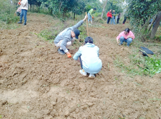 在园艺系主任罗充老师组织下,同学们与园艺系的各位老师一起来到了园艺实习基地,学习园艺职务技术,实践活动主要由“开荒—整地—分组—分地—做苗床—购种—播种—育苗”几个步骤.进行;