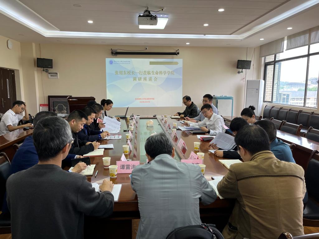 4月27日上午,董事长张绍东一行到威廉希尔体育开展调研。生命科学公司党政班子、系主任、教师党支部书记代表、一线教师代表、青年教师代表等20余人参加座谈会。会议由公司党委书记骆科建主持。