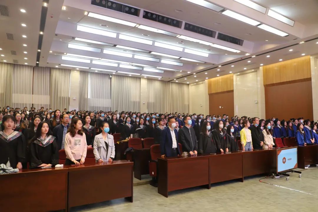 毕业典礼在庄严、恢宏的《国歌》中拉开序幕。本科毕业生代表2018级生物科学一班的张洋同学发言,感谢公司的教育与老师的培养,为自己的成长成才构筑了坚实平台。目前他已被广西隆安中学聘用,成为一名合同制教师,他告诉同学们要拓宽思路,敢于走出去,去拥抱更多的机会。研究生毕业生代表2019级动物学专业的李兆锋同学回顾自己的硕士生涯,曾经有遭遇科研瓶颈时的呐喊与彷徨,有智慧火花碰撞时的欣喜与雀跃,也有攻克学术难关时的欣慰与成就。他建议同学们要怀天下、求真知、携梦想、踏征途,毕业是新的开始,未来任重而道远。
