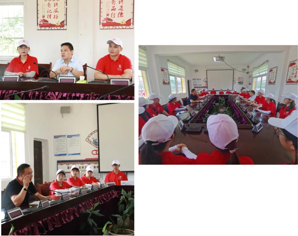 为更好地推进暑期“三下乡”社会实践活动的顺利开展,公司“三下乡”社会实践志愿服务队在右二村村委会议室召开座谈会。出席本次会议的有公司党委副书记夏天、服务队指导老师童炳丽、冯玉铭、右二村村支书王常友及三下乡服务队全体成员。本次会议由公司党委副书记夏天主持。会议主要介绍了右二村的基本情况和农业产业的发展,旨在“强化思想引领,着力增强服务热情”,有利于推动乡村振兴,加快农业产业现代化,促进旅游业的发展。