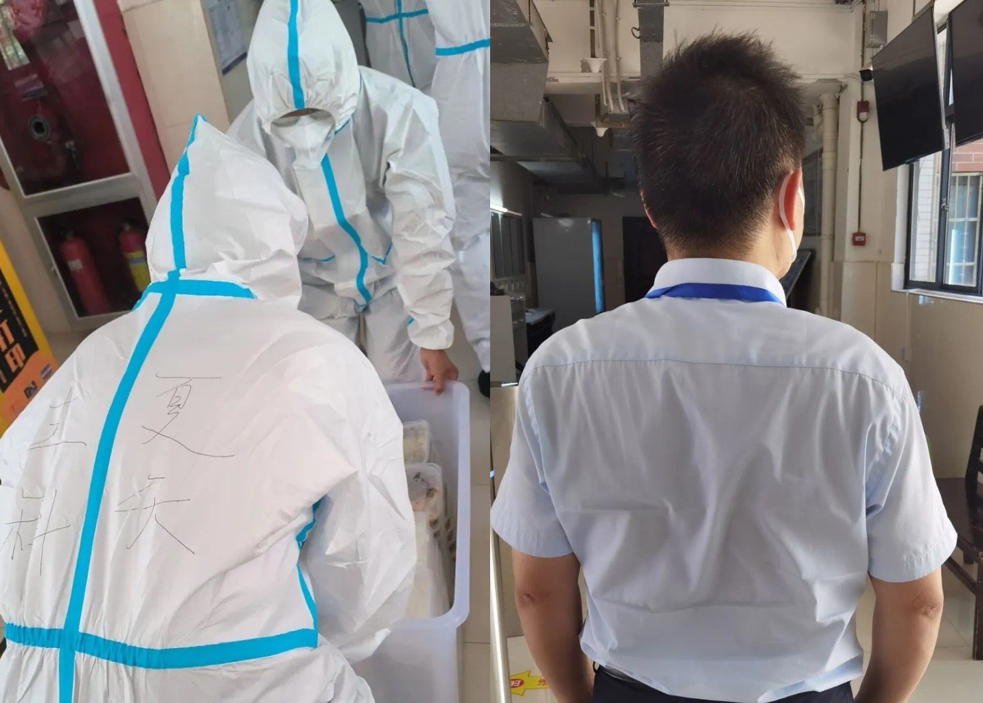 夏天副书记亲自为同学送餐,衣服被汗水浸湿