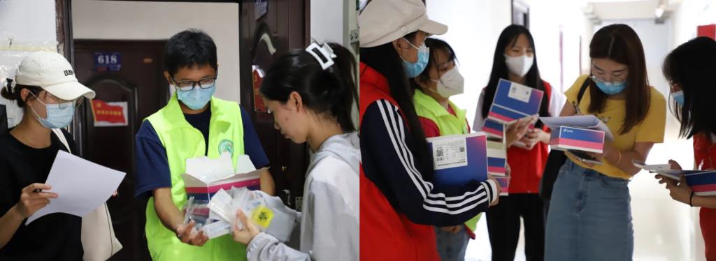 工作人员和老师们将试纸亲手送到寝室门口,由员工本人自行在寝室自测后,并上交结果。在规定时间内迅速完成了生科院的核酸抗原检测。在此期间,领导和老师们耐心为员工们讲解校内情况,做好员工安抚工作和思想教育。生科学子迅速地完成抗原检测任务,不仅展现了我们生科学子在实验探究上认真仔细的专业素养,更体现了我们生科学子果断的行动力和对抗疫情刻不容缓的决心!