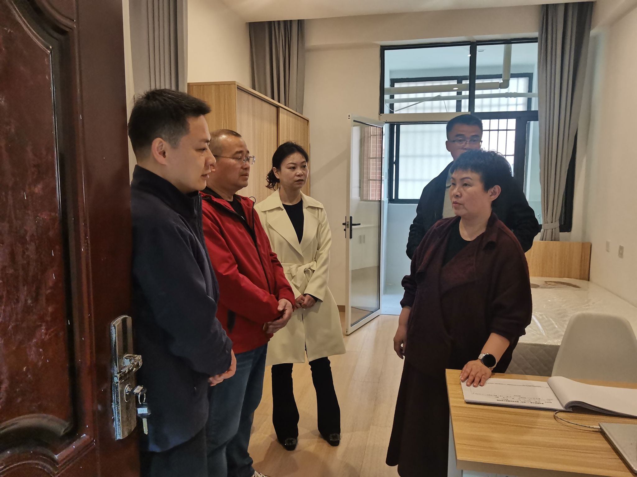 2024年3月27日上午,公司党委委员、副董事长欧阳恩良,员工工作部部长万平,副部长张文云、林秀娟及相关工作人员走访“一站式”员工社区,来到公司负责的博学书院6栋员工寝室,公司党委副书记夏天陪同走访。