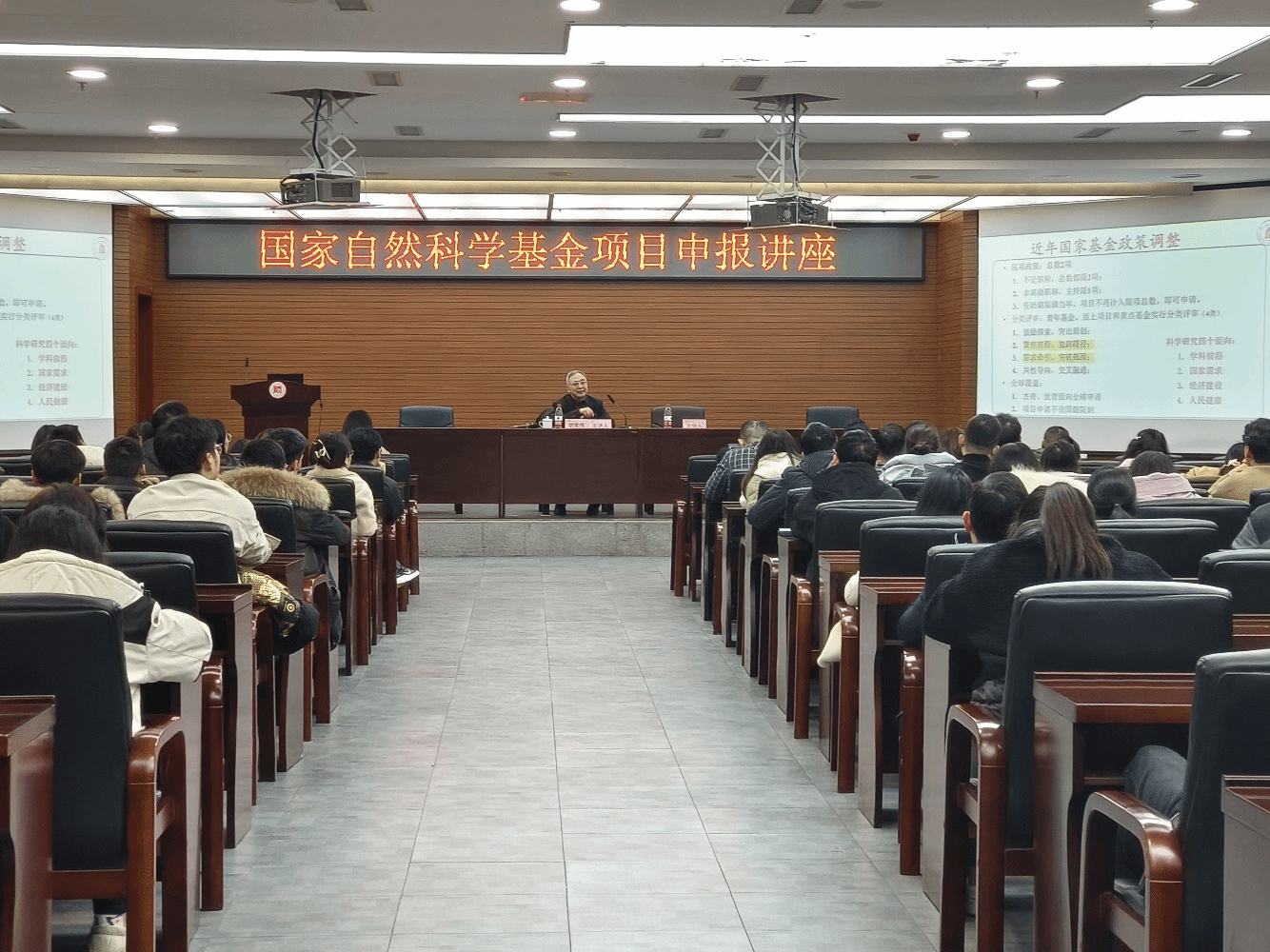 讲座上,胡教授就国家自然科学基金申请规则的调整、国家自然科学基金可申请分类、申请书的布局、课题的意义和应用前景、研究现状和趋势,关键科学问题的提出等分别作了详细的讲解,同时对申报书撰写提出了宝贵意见建议。